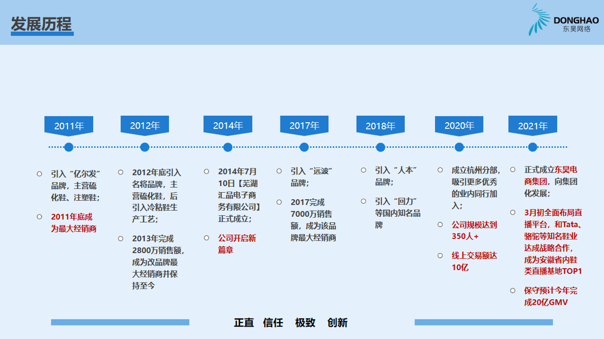 蕪湖東昊網(wǎng)絡(luò)科技有限公司,成立于 2014 年,是一家以互聯(lián)網(wǎng)平臺銷售為核心的電子商務(wù)運(yùn)營商,公司成立以來,始終專注于休閑運(yùn)動鞋的互聯(lián)網(wǎng)銷售業(yè)務(wù),產(chǎn)品線覆蓋硫化鞋、注塑鞋、冷粘鞋,在互聯(lián)網(wǎng)二級類目單品牌排名前三,綜合成績排名TOP1;